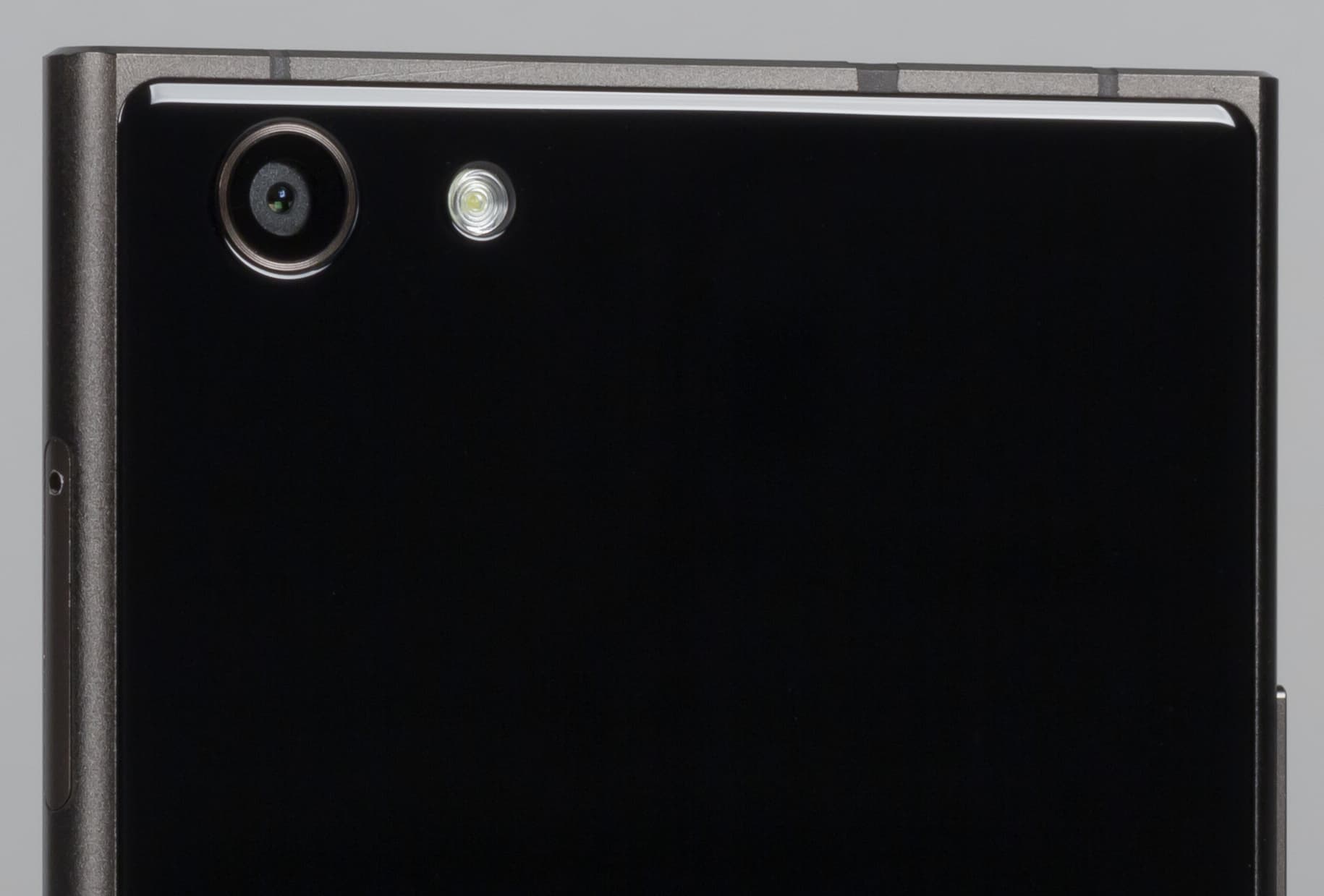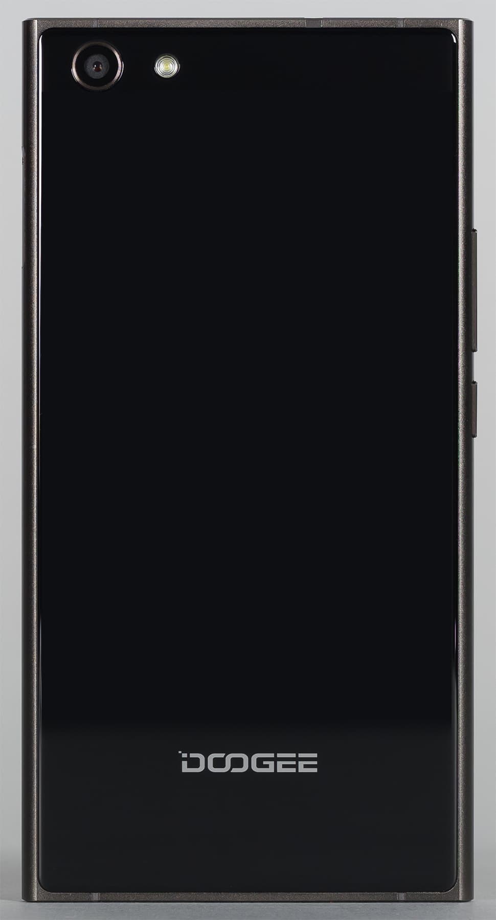 Стекол тут два, используется Gorilla Glass, и стекла сильно затонированы. Они абсолютно симметричны, при выключенном экране сходу трудно понять, где у смартфона фасад, а где тыл. А после того, как вы идентифицируете фронтальную панель, понадобится еще понять, где здесь верх, а где низ, поскольку под непроницаемым стеклом не разглядеть никаких элементов, и даже решетка динамика едва различима и ничем не выделена на фоне стекла. По крайней мере, так обстоят дела с черным вариантом корпуса Doogee Y300.