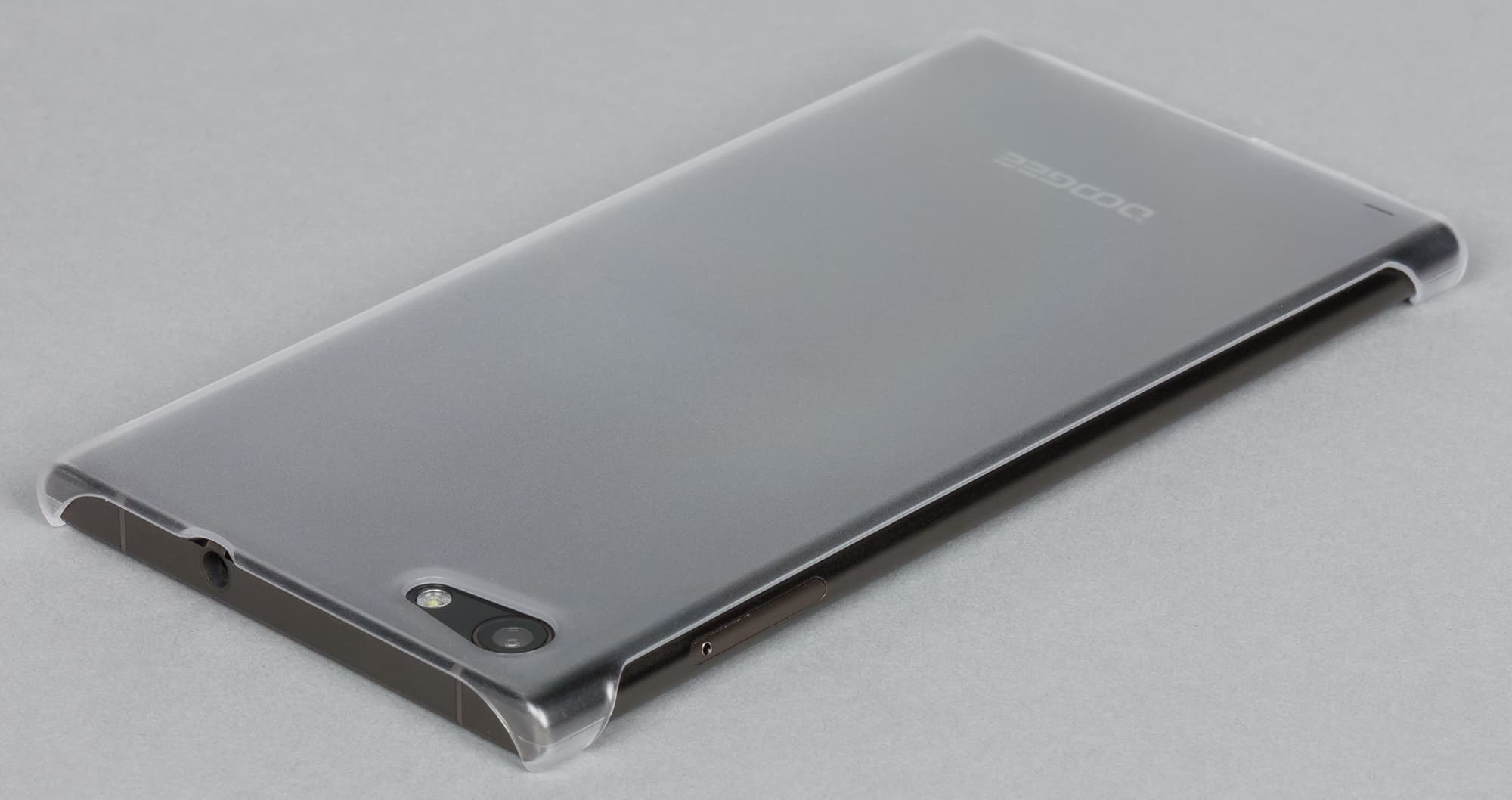 Чехол, правда, совсем простенький, у него даже нет боковых стенок, он представляет собой полупрозрачную крышку для тыльной стороны корпуса с небольшими боковыми зацепами. Трудно сказать, сильно ли портит внешний вид аппарата такой чехол, но к нему явно можно подобрать что-то более изящное.