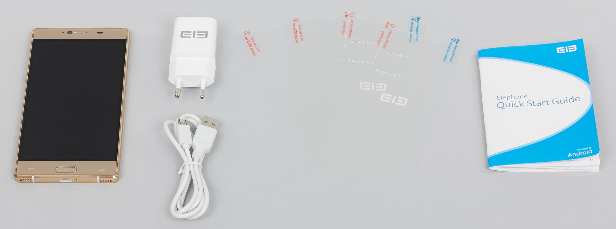 Elephone M2 поставляется в продажу в неожиданно весьма крупной коробке, размеры которой не обусловлены скудным ее содержимым. Коробка выполнена из абсолютно черного матового картона без картинок и с минимальным количеством надписей. Таким образом она как бы претендует на премиальный уровень, но это у нее плохо получается, ощущения дороговизны не возникает.