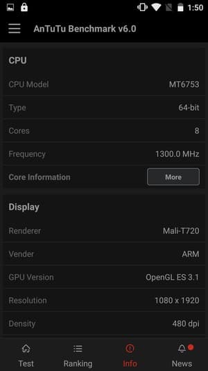 По результатам тестирования знакомая платформа ожидаемо показала результаты уверенного среднего уровня, никак не выше. В этом плане МТ6753 значительно уступает своей гораздо более мощной сестре МТ6752, у которой частота тех же ядер достигает 1,7 ГГц. Отличие имеется также и в видеоускорителе: вместо мощного Mali-T760 с частотой ядер до 700 МГц здесь используется трехъядерный Mali-T720 с частотой ядер до 450 МГц, это сказывается негативно на производительности в играх.