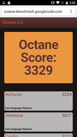 | Google Octane 2 (больше — лучше) | 3329 | 3772 | 5250 | 4197 | 4814 |