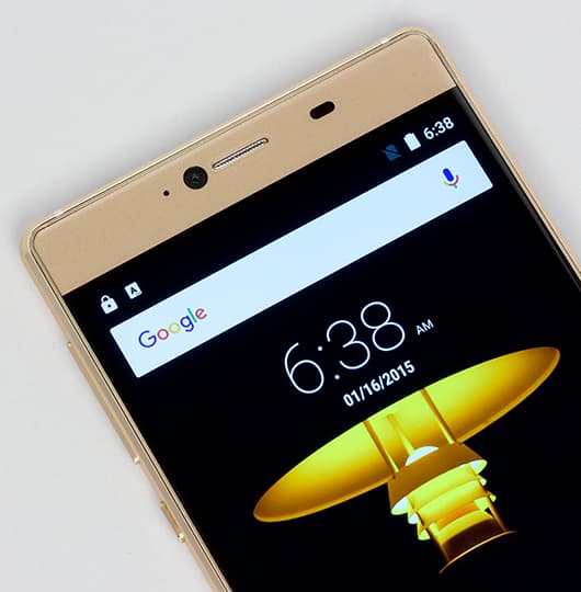 Смартфон Elephone М2 оснащен сенсорной матрицей IPS с размерами 68×121 мм, диагональ — 5,5 дюйма, разрешение — 1920×1080 точек. Соответственно, плотность точек составляет 401 ppi. Ширина рамки от края экрана до края корпуса составляет с боков по 4 мм, сверху — 15 мм, снизу — все 18 мм. Рамка широкая, но при столь крупной передней панели ее ширина не бросается в глаза.