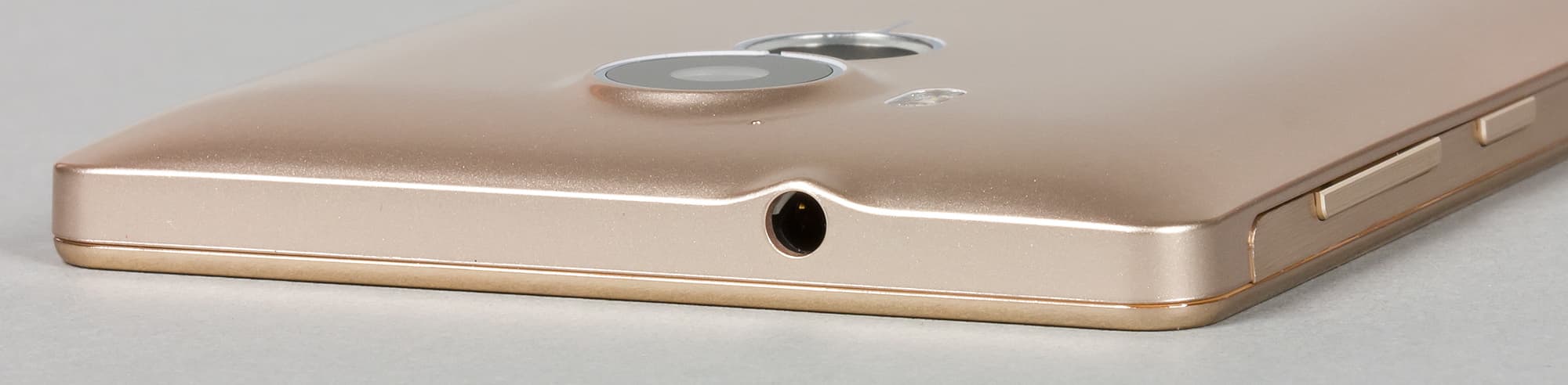 В верхнем торце имеется лишь одинокое отверстие разъема для выхода на наушники, ИК-передатчик для управления бытовой техникой в данном аппарате не предусмотрен. Отверстие второго, вспомогательного микрофона расположили на задней крышке рядом с камерой.