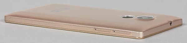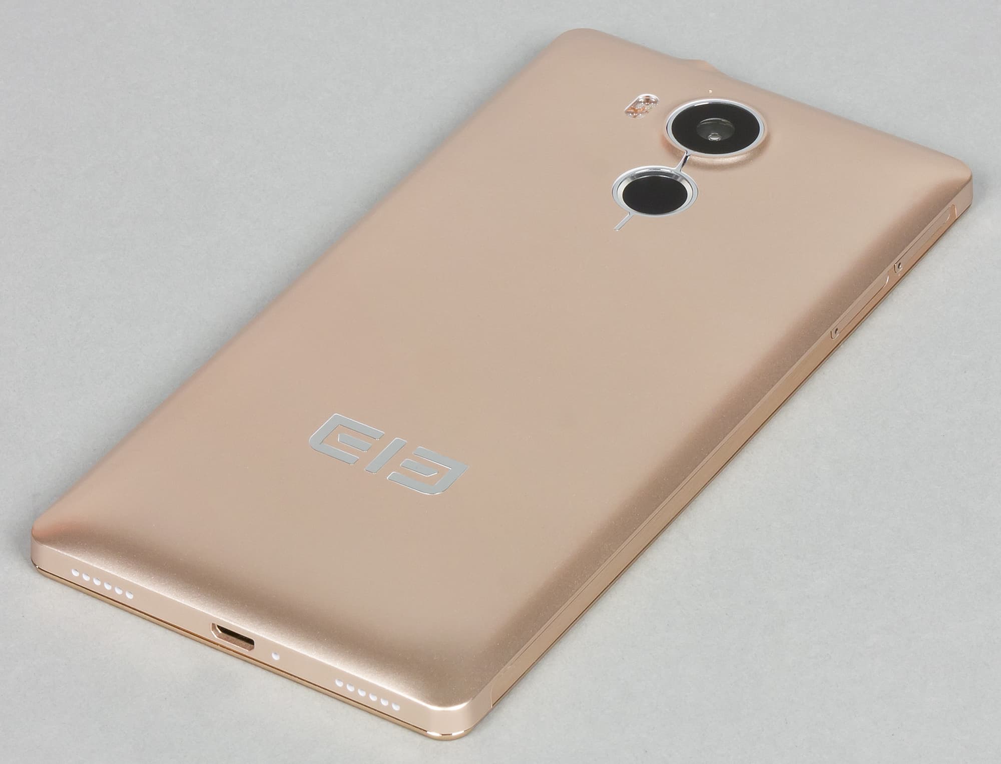Большая часть корпуса Elephone Vowney, по всей видимости, выполнена из пластика, окрашенного под металл. И лишь продольные небольшие вставки на боковинах сделаны из настоящего металла. Как бы то ни было, аппарат получился весьма тяжелым, связано это с материалами изготовления, или нет. В любом случае непривычную толщину это никак не оправдывает: смартфон вполне мог бы быть тоньше, возможно, тогда он не выглядел бы и не ощущался таким грузным.