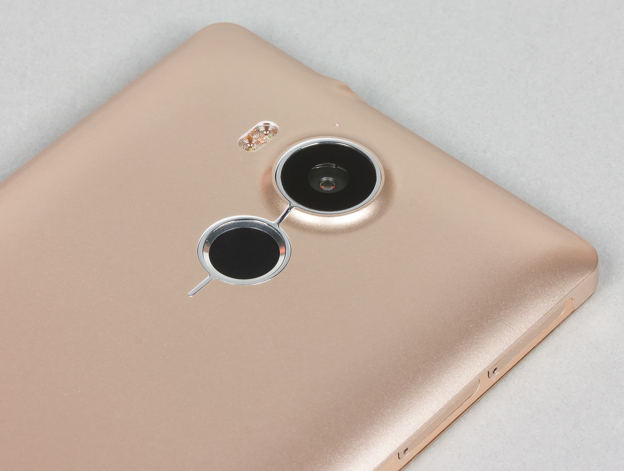 Рядом с модулем камеры установлен сканер отпечатков пальцев. Это далеко не лучший вариант для размещения данного элемента, но, по всей видимости, именно он будет в дальнейшем преобладать у китайских производителей смартфонов. Сканер работает стандартно: механической кнопки под его площадкой нет, активация экрана и разблокирование происходят за одно прикосновение, палец можно подносить под любым углом. Площадка заметно утоплена вглубь корпуса, так что по ее краям, скорее всего, со временем будет скапливаться грязь.