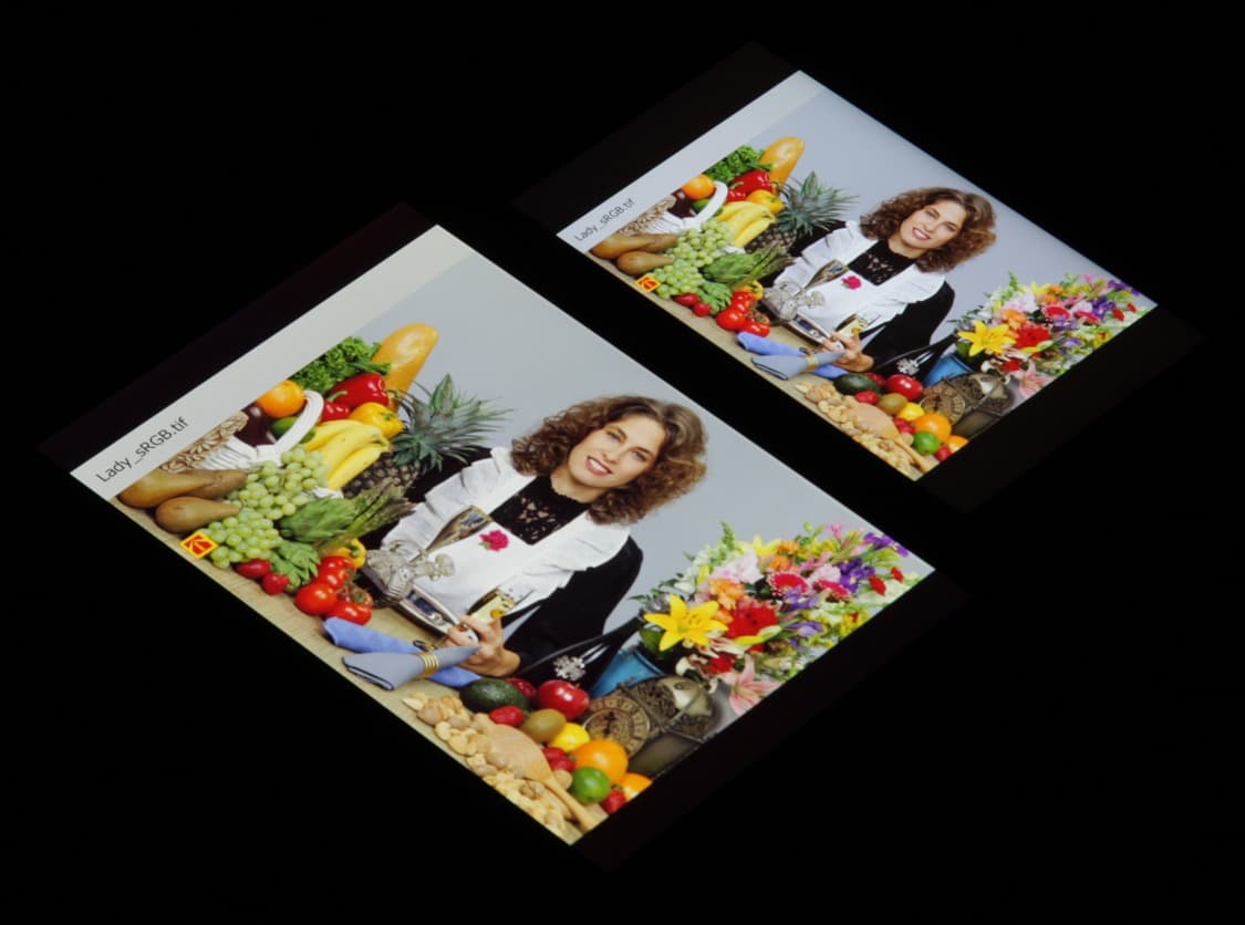Видно, что цвета, как и контраст не сильно изменились у обоих экранов. И белое поле: