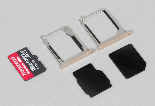 В объемном корпусе нашлось место для размещения двух боковых лотков для карточек, но производитель и здесь решил сильно не напрягаться. На салазках имеется только две ячейки, одна из которых предназначена только для формата Micro-SIM, а на вторую можно уложить либо карточку Nano-SIM, либо карту памяти, но тогда о работе с двумя SIM-картами придется забыть.