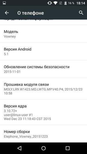 Тестирование, как обычно, проводилось без задействования режима энергосбережения. Никакого специфического собственного способа экономии энергии производитель здесь и не предложил, в Elephone Vowney можно задействовать лишь штатный энергосберегающий режим, появившийся по умолчанию с появлением пятой версии Android.