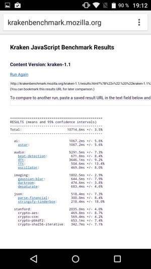Что касается бенчмарков для оценки скорости движка javascript, то стоит всегда делать скидку на то, что в них результаты существенно зависят от браузера, в котором запускаются, так что сравнение может быть истинно корректным только на одинаковых ОС и браузерах, а такая возможность имеется при тестировании не всегда. В случае с ОС Android мы всегда стараемся использовать Google Chrome.