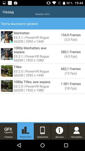 Хотя в целом, смартфон по своей производительности, безусловно, находится на достаточно высоком уровне, чтобы его аппаратных возможностей еще хватало на текущий момент для выполнения любых задач, в том числе и трехмерных игр. Но вот запаса мощности у этого решения на будущее, пожалуй, нет, если уже сейчас платформа работает при 12-18 fps там, где GPU Adreno 430 выдает 30-40 fps. Но это что касается сложных графических тестов. На примере реальных игр смартфон продемонстрировал, что с ними он пока справляется без особых проблем.