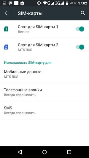 Смартфон поддерживает работу с двумя SIM-картами. Можно заранее назначить одну из SIM-карт назначить основной для организации голосовых звонков или отправки SMS-сообщений. С сетями 3G/4G может работать SIM-карта в любом слоте, однако одновременно в этом режиме может функционировать лишь одна из карт. Для смены назначений слотов карточки менять местами не требуется — это можно сделать прямо из меню телефона. Работа с двумя SIM-картами организована по привычному стандарту Dual SIM Dual Standby, когда обе карты могут находиться в активном режиме ожидания, но одновременно работать не могут — радиомодуль здесь только один.