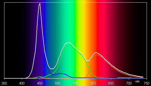 Спектры показывают, что светофильтры матрицы в умеренной степени подмешивают компоненты друг к другу: