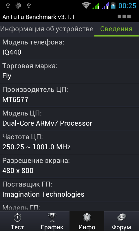 Убедимся же еще раз в озвученных фактах и посмотрим на те баллы, которые получил Fly IQ440 в различных тестах производительности.