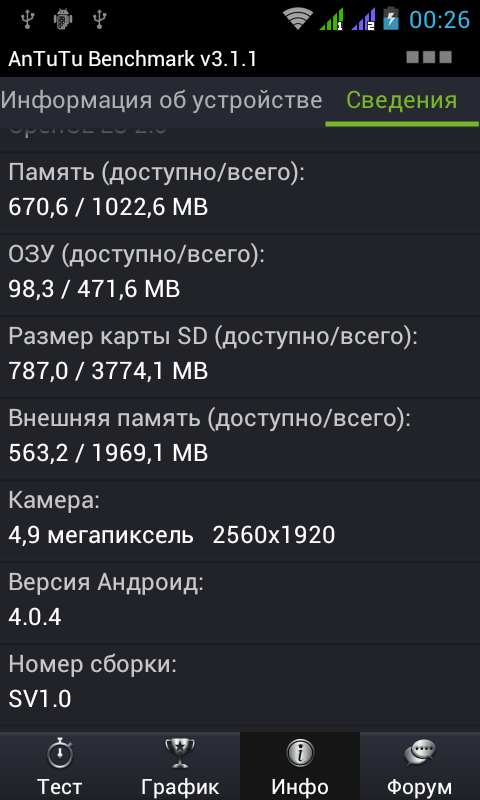 - Операционная система Android 4.0.4 (Ice Cream Sandwich);