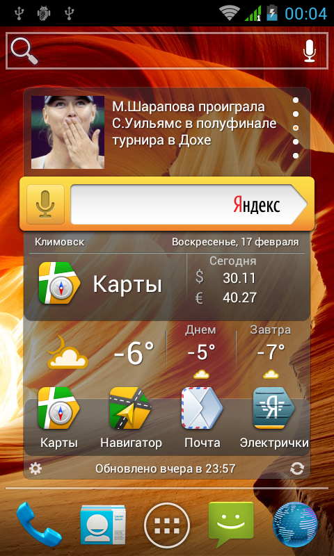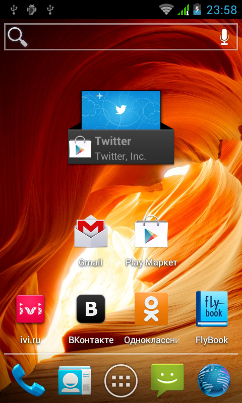 Зато дополнительного программного обеспечения в прошивку героя обзора по меркам бюджетного смартфона встроено предостаточно. В этот список входят: клиенты популярных в России социальных сетей — Вконтакте и Одноклассники, проигрыватель потокового видео сервиса ivi.ru, книжный магазин собственной разработки Flybook, клиент интернет-банка Ubank, intaxi — программа для поиска и вызова такси, CoinKeeper — программа для ведения личных финансов, VoiceChanger — бессмысленное приложение (хотя для кого как) для телефонных звонков «чужим голосом», работает через платные вызовы на короткий номер, файловый менеджер ES Проводник — пожалуй, самая полезная программа из списка, LivelyCubes — игра-головоломка, и завершает список огромный виджет компании Яндекс с разнообразной информацией, который занимает одну из пяти вкладок основного экрана системы и обеспечивает быстрый доступ к ее различным сервисам. Описывать весь этот «зоопарк» не имеет особого смысла, большинство программ в представлениях не нуждаются; отдельно стоит отметить приложения Flybook и Ubank, их подробное описание мы уже приводили в обзоре родного брата героя обзора — Fly IQ441.