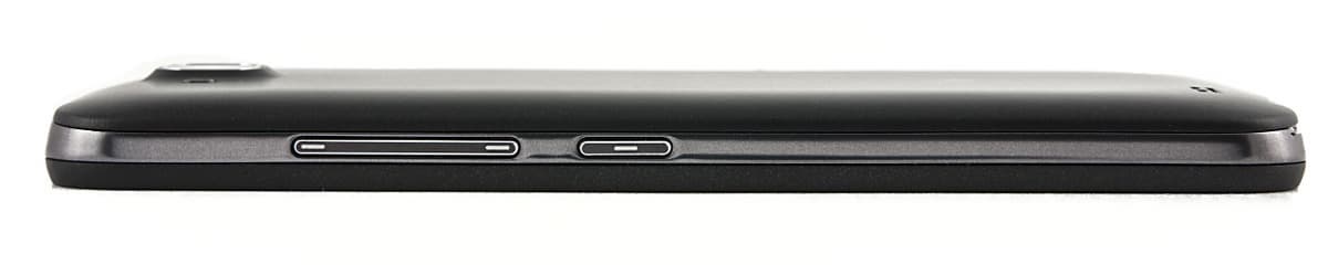 В верхней части правого торца установлены кнопки регулировки громкости и выключатель питания под ними. Выступают из корпуса они совсем мало, так что на привыкание придется потратить некоторое время. Впрочем, место выбрано неплохое — ими удобно пользоваться и правой и левой рукой. Выделенная кнопка камеры очень редко встречается на бюджетных моделях, так что ее отсутствие в минус ставить не будем.
