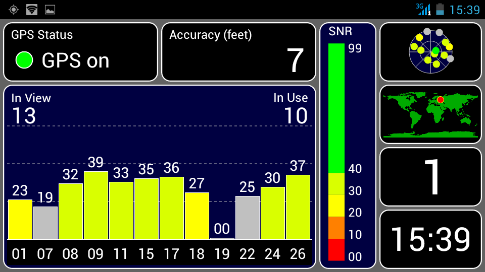 Смартфон оборудован приемником GPS с поддержкой A-GPS. Судя по отчету программы мониторинга, спутников Глонасс данная модель не видит. В работе сервис навигации показал себя неплохо — спутники ловились быстро, точность позиционирования хорошая, чувствительность приемника нормальная.