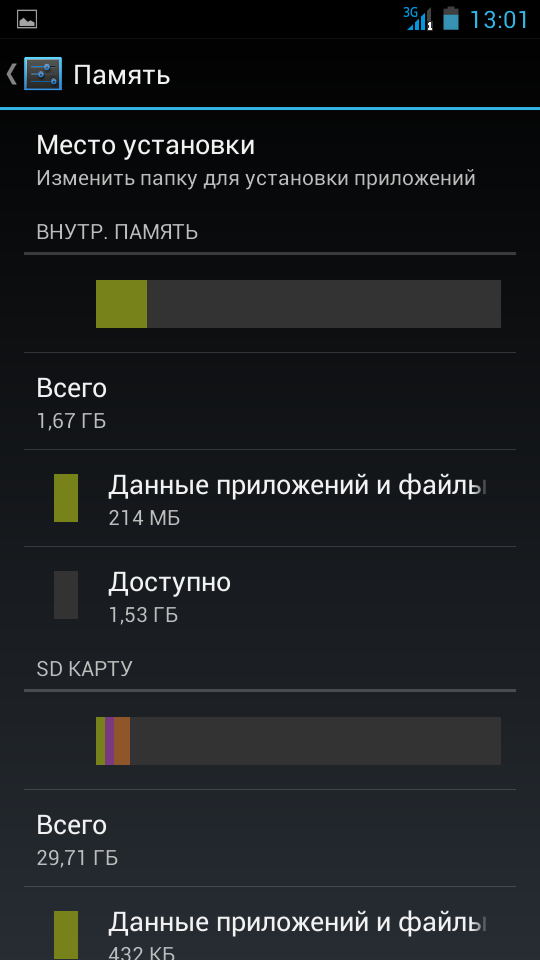 Объем оперативной памяти устройства равен 1 ГБ, что все чаще встречается даже в недорогих моделях и, учитывая современные программы, явно предпочтительнее, чем 512 МБ. При этом общий объем встроенной флэш-памяти — 4 ГБ. Из нее пользователю выделено около 1,7 ГБ в виде внутренней памяти (для установки программ) и 1 ГБ представлен в виде флэш-диска. Дополнительно можно использовать карты памяти microSD.