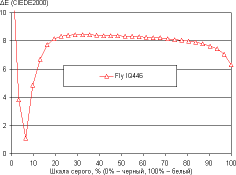 Сравнение с Fly IQ451 позволяет оценить зависимость размера и разрешения экрана — в тестах чтения и просмотра видео видно преимущество IQ446 с меньшим размером экрана и меньшим разрешением на 28% и 46% соответственно. Тогда как у IQ451 экран по площади больше на 24%, а по разрешению — на 78%.