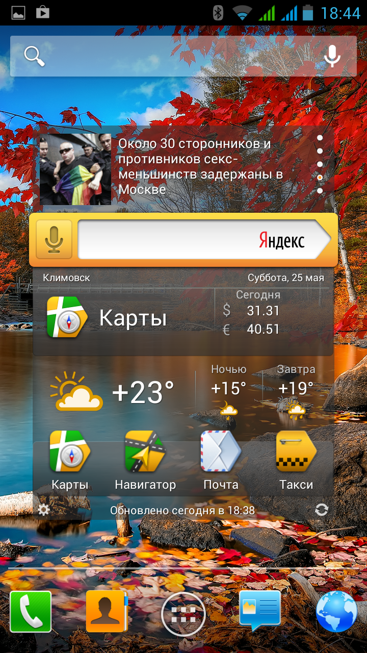 Прежде всего это многочисленные сервисы Яндекса: поиск, карты, навигатор, почта, такси, погода, новости. Все они объединены в один огромный виджет, который занимает один из экранов рабочего стола системы.