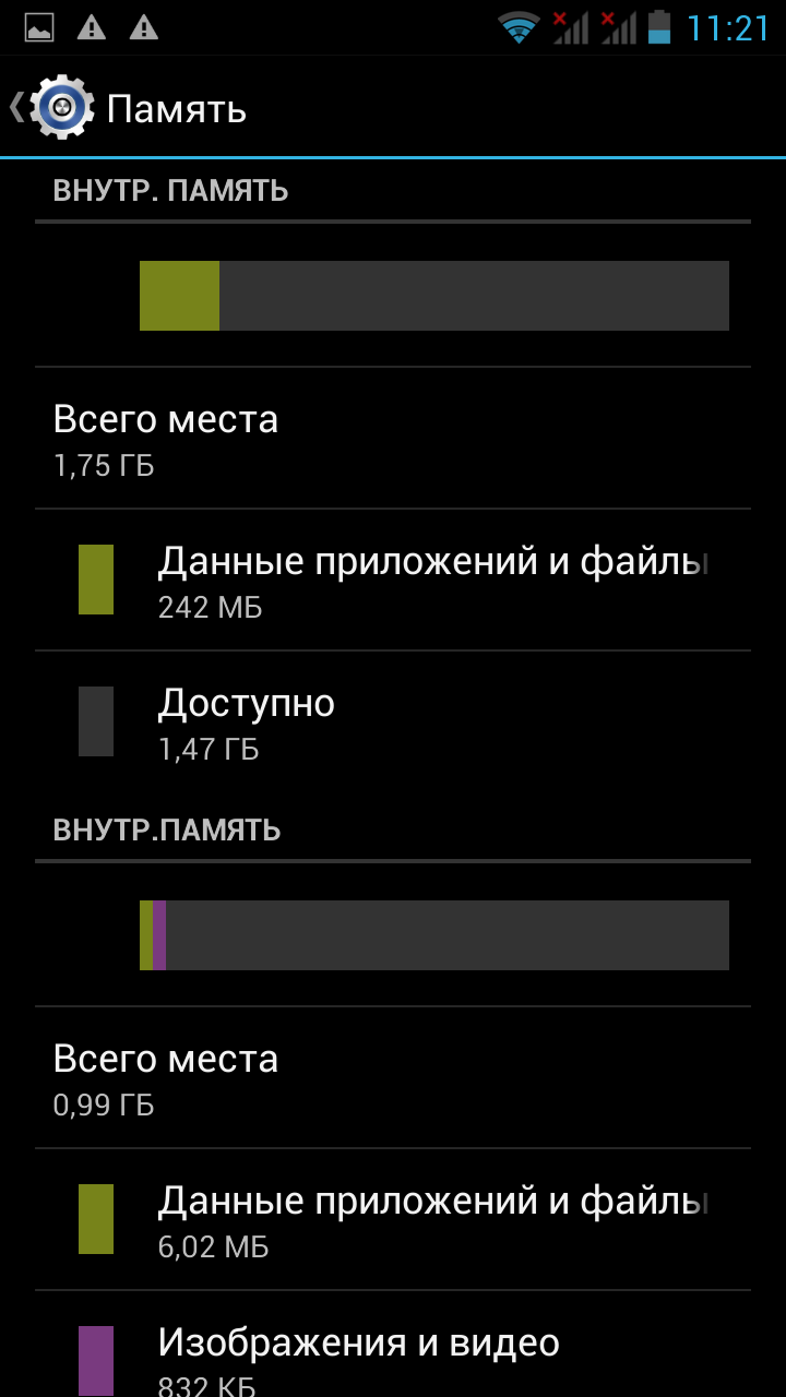 - Оперативная память 1 ГБ, основная флеш-память 4 ГБ (пользователю доступно 900 МБ на системном разделе и 1,75 ГБ на разделе для данных);