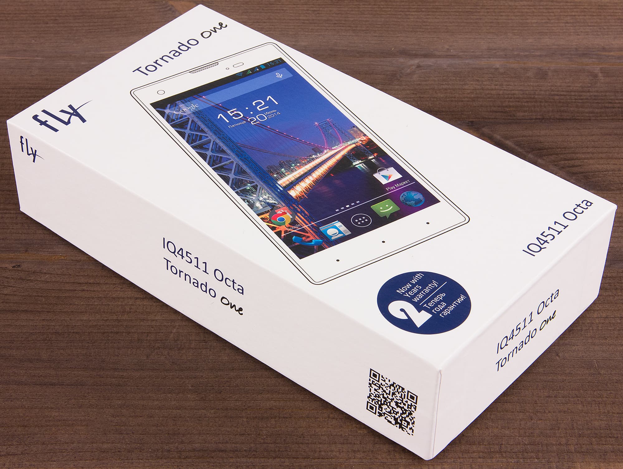 Fly Tornado One поставляется в продажу в очень небольшой по размерам, компактной прямоугольной коробочке из твердого белого матового картона. Упаковка оформлена достаточно аккуратно, разноцветия нет, минимум надписей, выглядит приятно. Внутри имеется несколько отдельных коробочек размером поменьше, все аксессуары упакованы в собственные отделения. В целом, упаковка смартфона производит положительное впечатление и настраивает на благоприятное знакомство с содержимым.