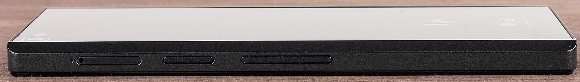 Ширина рамок от края экрана до края корпуса по бокам составляет около 3,5 мм — боковые рамки достаточно узкие. Ширина верхней кромки над экраном составляет 13 мм, нижней — 16 мм, эти размеры также невелики, особенно учитывая тот факт, что в нижней части расположены аппаратные кнопки.