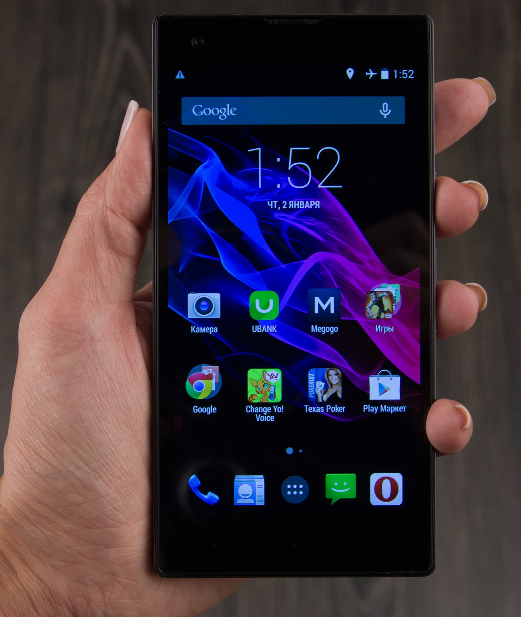 Что касается расцветок, то, судя по описанию на официальном сайте, смартфон представлен на рынке лишь в одном, угольно-черном цвете — таком, как изображен на наших снимках. А жаль: возможно, при сочетании разных цветов материалы корпуса Fly Tornado One могли бы заиграть совсем иными красками.
