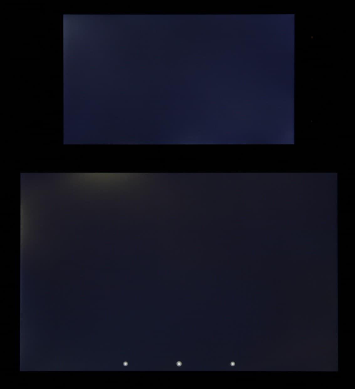 При перпендикулярном взгляде равномерность черного поля неидеальная, местами черный цвет заметно высветляется: