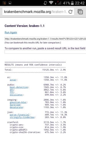 Что касается бенчмарков для оценки скорости движка javascript, то стоит всегда делать скидку на то, что в них результаты существенно зависят от браузера, в котором запускаются, так что сравнение может быть истинно корректным только на одинаковых ОС и браузерах, а такая возможность имеется при тестировании не всегда. В случае с ОС Android мы всегда стараемся использовать Google Chrome.