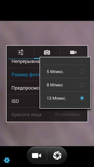 Основная, тыловая камера оснащена 13-мегапиксельным сенсором Sony Exmor RS IMX135 с диафрагмой f/2.0 с автофокусом и светодиодной вспышкой. Меню настроек классическое, знакомое по другим смартфонам на системе Android, в которых производитель не устанавливал никаких альтернативных оболочек. Разделы меню интуитивно легко находятся, все надписи крупно и четко прорисованы, пользоваться камерой вполне комфортно даже при ярком солнечном освещении. Помимо стандартного режима съемки в настройках можно выбрать и другие, более специфические режимы, такие как спортивный, ночной, портрет, пейзаж, панорама и т. д.