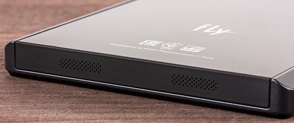 В звуковом плане смартфон Fly Tornado One ничего особенного собой не представляет. У аппарата встроен лишь один основной динамик, максимальный уровень громкости средний, звук глуховатый, без заметного присутствия низких частот. Поскольку решетка динамика выведена на нижний торец, звук лежащего на столе телефона не перекрывается поверхностью. В торец корпуса врезано две симметричных решетки, но звук исходит лишь из одной из них, вторая является бутафорией. Для разговорного микрофона данные решетки не предназначены, поскольку микрофон скрывается за отдельным отверстием, образованным едва заметной щелью между корпусом и передним стеклом. В разговорном динамике голос собеседника, тембр и интонации остаются знакомыми и различимыми.