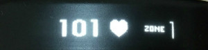 Три цифры слева — это количество ударов в минуту, а надпись zone 1 означает соответствие пульса одной из зон нагрузки. Настроить зоны (путем указания своего пульса в состоянии покоя и максимального пульса) можно в настройках профиля. Без настройки значения будут неверными, и ориентироваться на них при тренировках нельзя!