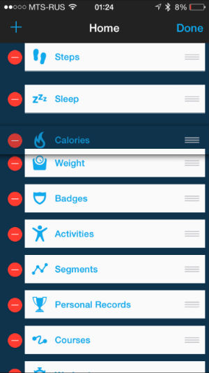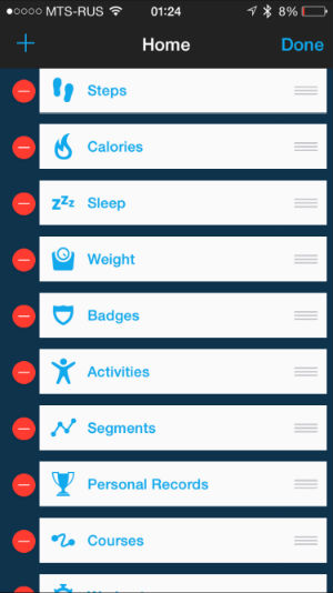 Поскольку смартфонное приложение является, фактически, адаптированной версией веб-сервиса Garmin Connect, его функциональность практически полностью схожа с браузерной версией. Но есть несколько любопытных отличий. Во-первых, смартфонное приложение при каждом запуске синхронизируется по Bluetooth с браслетом, получая от него все данные. Таким образом, если вам нужно видеть детали своих достижений здесь и сейчас, то это более удобный способ, чем подсоединять браслет к компьютеру и выполнять синхронизацию через Garmin Express (если это тот компьютер, на который вы устанавливали это приложение).