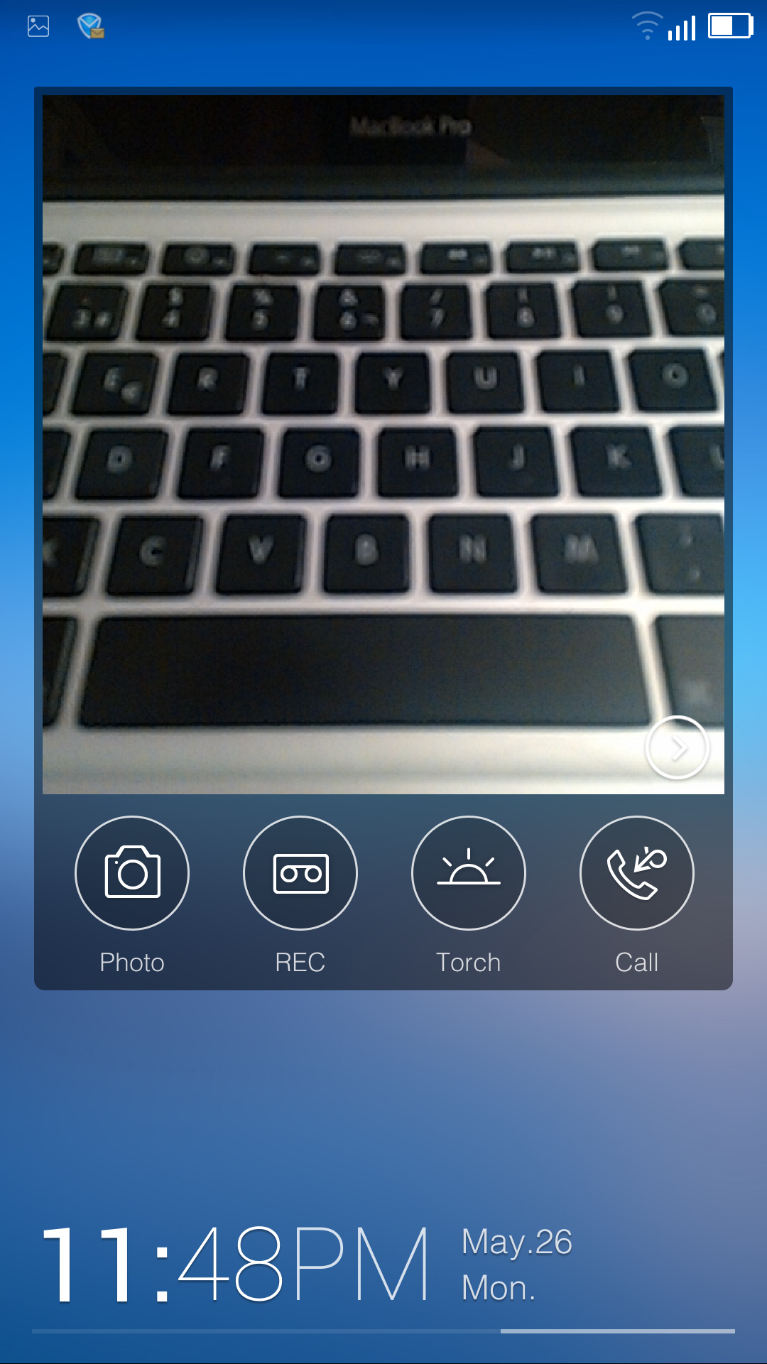 Первая представляет собой большой виджет на одной из вкладок основного экрана системы. Она позволяет быстро сделать снимок, начать запись видео, включить LED-вспышку как фонарик и получить фальшивый входящий звонок (!), чтобы отвязаться от собеседника или покинуть неприятную компанию.