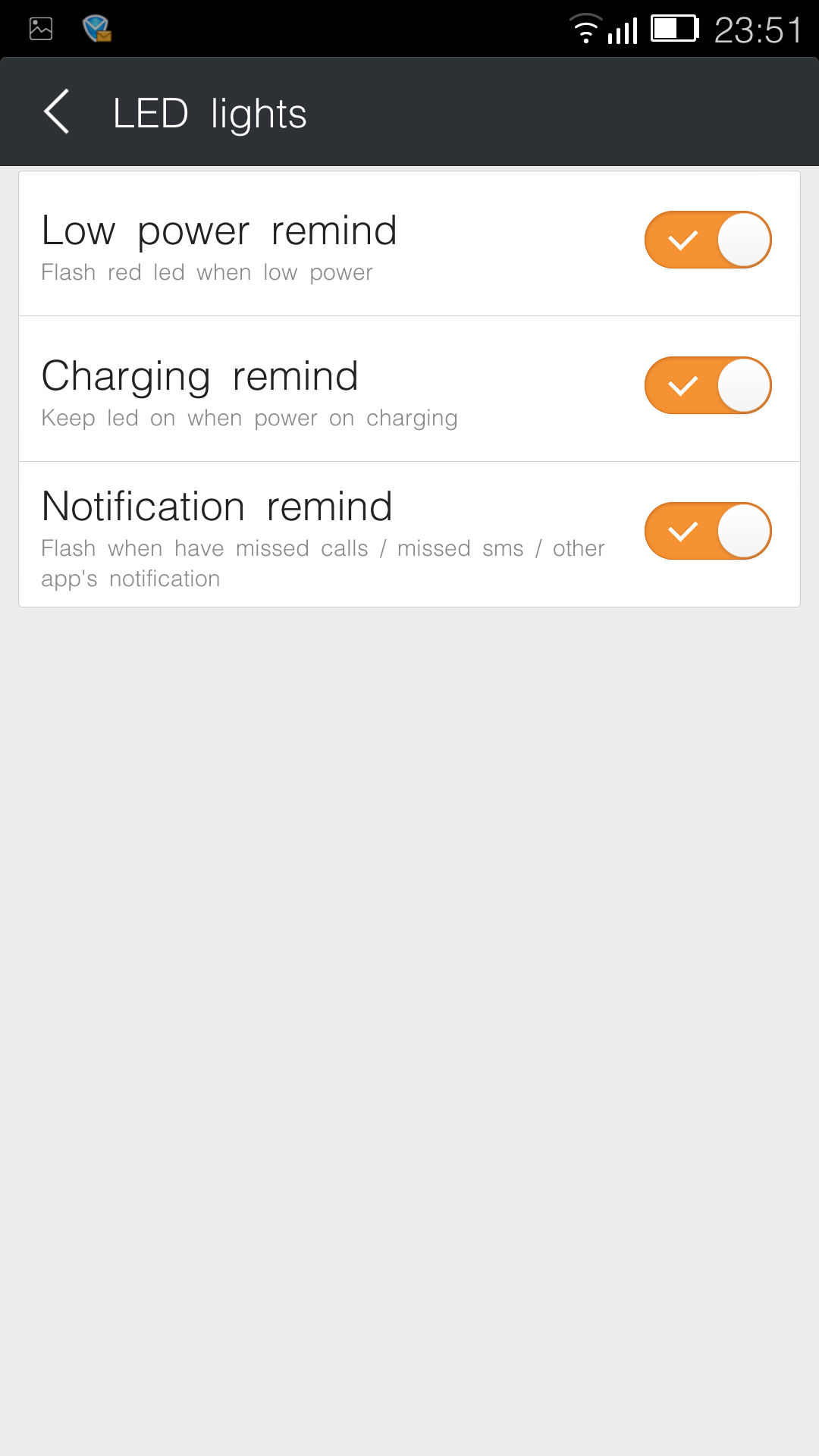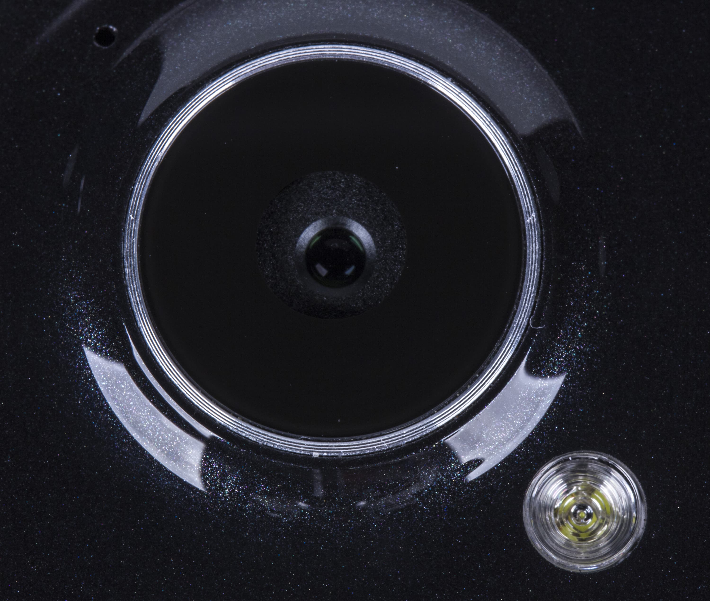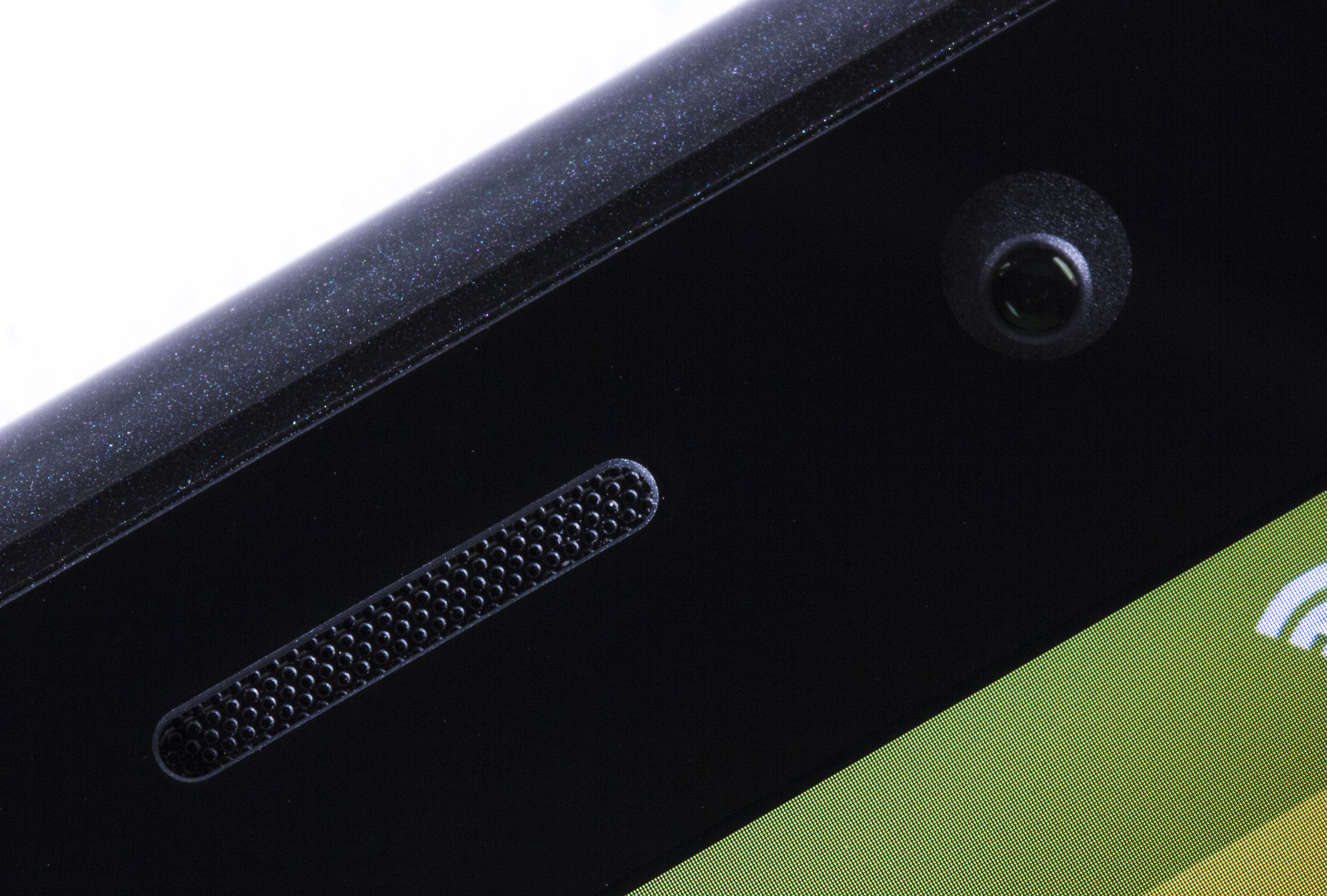 Рядом с телефонным динамиком расположены датчики приближения и освещения, объектив дополнительной камеры и информационный светодиод. Последний начинает светиться во время определенных событий: при поступлении нового сообщения, телефонных вызовах, низком уровне заряда аккумуляторной батареи. Всего цветов три: зеленый, красный и синий. Установка режимов работы индикатора доступна в системных настройках.