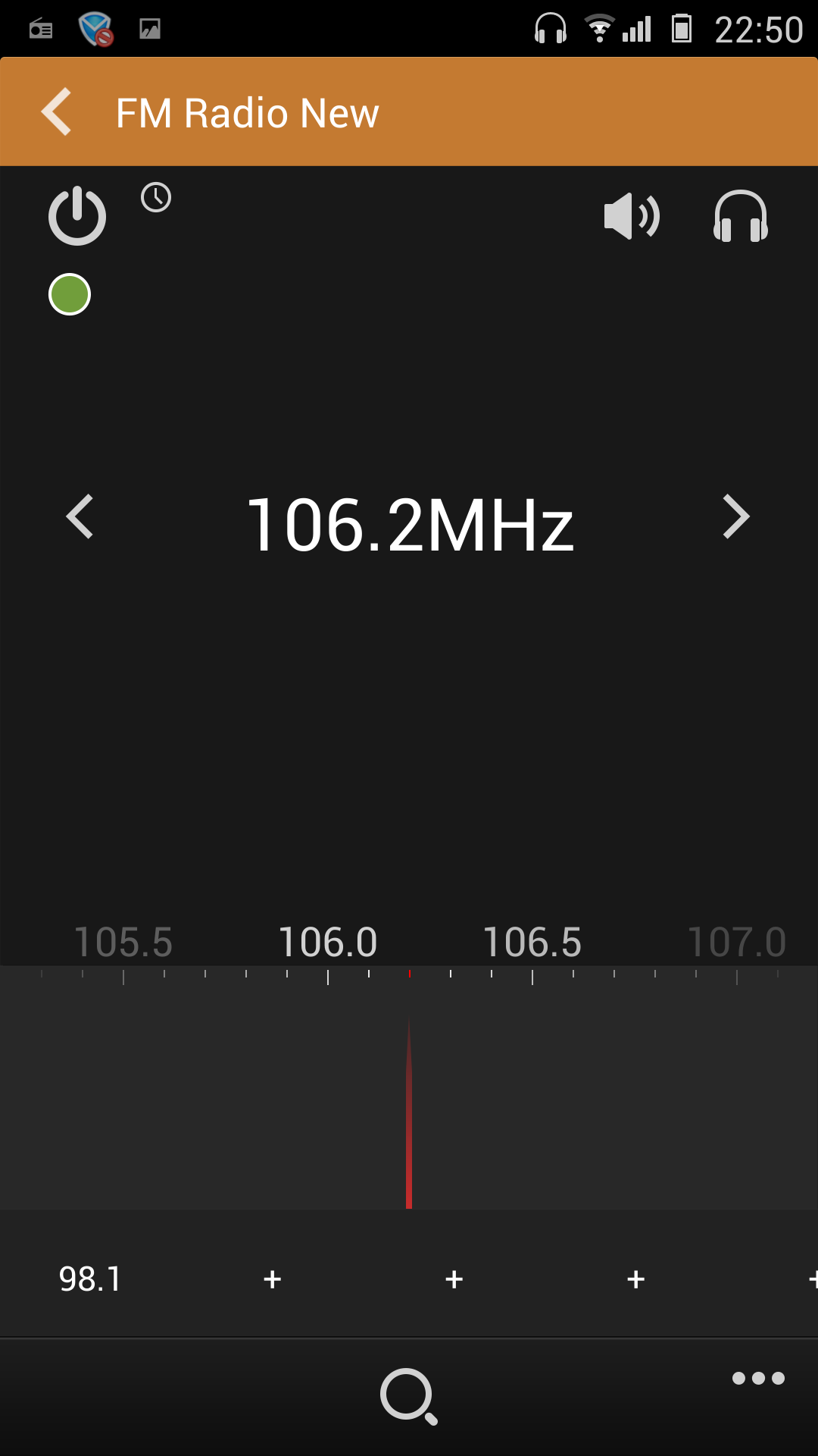 Встроенный в Gionee Elife E7 радиоприемник FM-диапазона работает только при подключенных наушниках, которые выполняют функцию радиоантенны. Качество приема сигнала хорошее. Программа управления FM-приемником позволяет настраивать частоту станции вручную либо проводить автоматический поиск по всему спектру. Есть также функция поиска станций по определенному жанру (видимо, данные считываются из сигнала RDS), но она ни разу ничего не нашла. Звук из FM-приемника можно выводить на наушники и динамик смартфона. Есть возможность записывать сигнал станций и сохранять его в аудиофайлы.