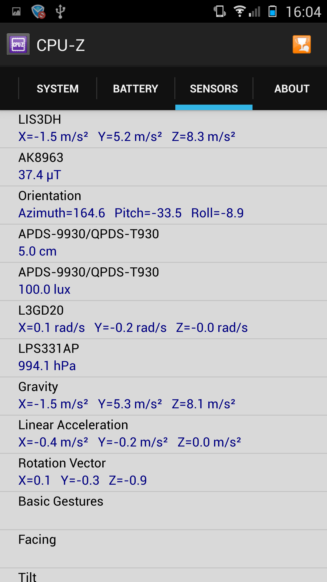 - Акселерометр, датчик приближения, освещенности, гироскоп