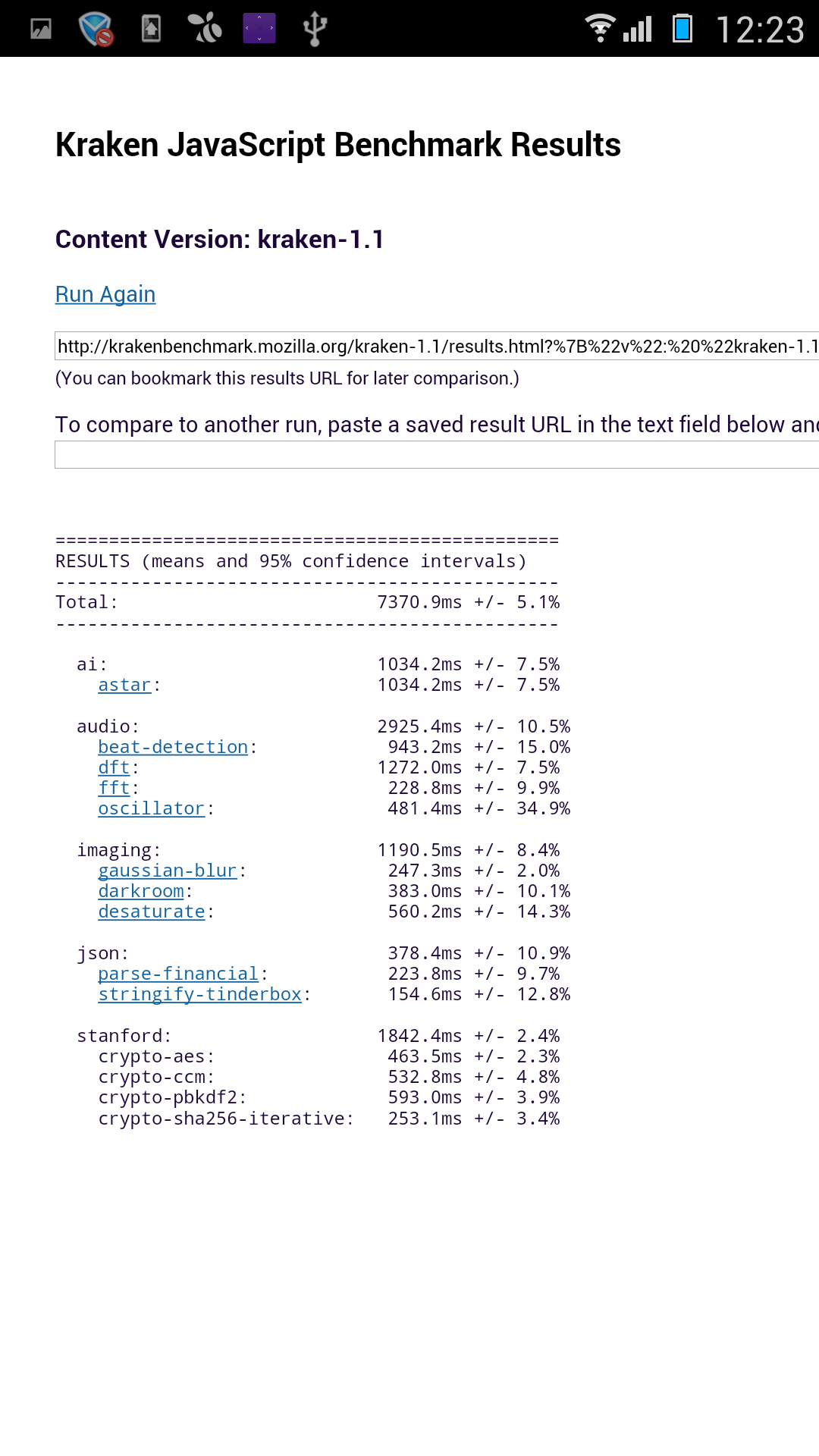 Превосходство над другими смартфонами с Qualcomm Snapdragon 800 подтвердилось и в игровом тесте Epic Citadel. В нем смартфон Gionee Elife E7 обошел даже флагманов Samsung и HTC 2014 года. Также очень достойно герой обзора выступил в тестах Bonsai и Basemark X. В заключение осталось посмотреть на производительность в браузерных тестах JavaScript.