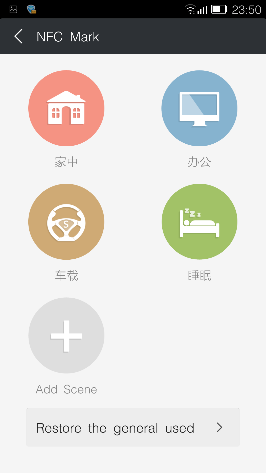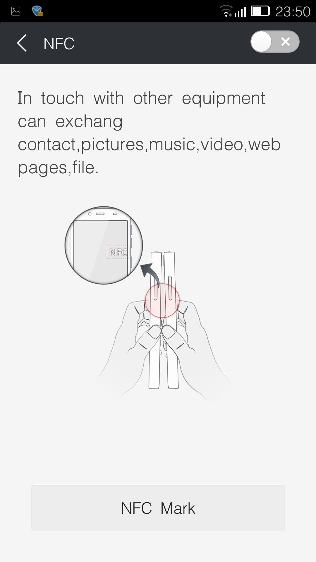 В Gionee Elife E7 есть поддержка технологии NFC, а в комплекте со смартфоном поставляются несколько NFC-меток. Если запустить соответствующее приложение в настройках смартфона, то можно увидеть, что Gionee Elife E7 способен обмениваться различными данными с другими оснащенными модулями NFC устройствами. А с помощью меток можно создать несколько «сценариев» использования смартфона и быстро между ними переключаться. Например настроить сценарии «дом», «работа», «машина», «сон» и в каждом из них выставить режимы работы Wi-Fi, GPS, звонка или активировать определенное приложение.