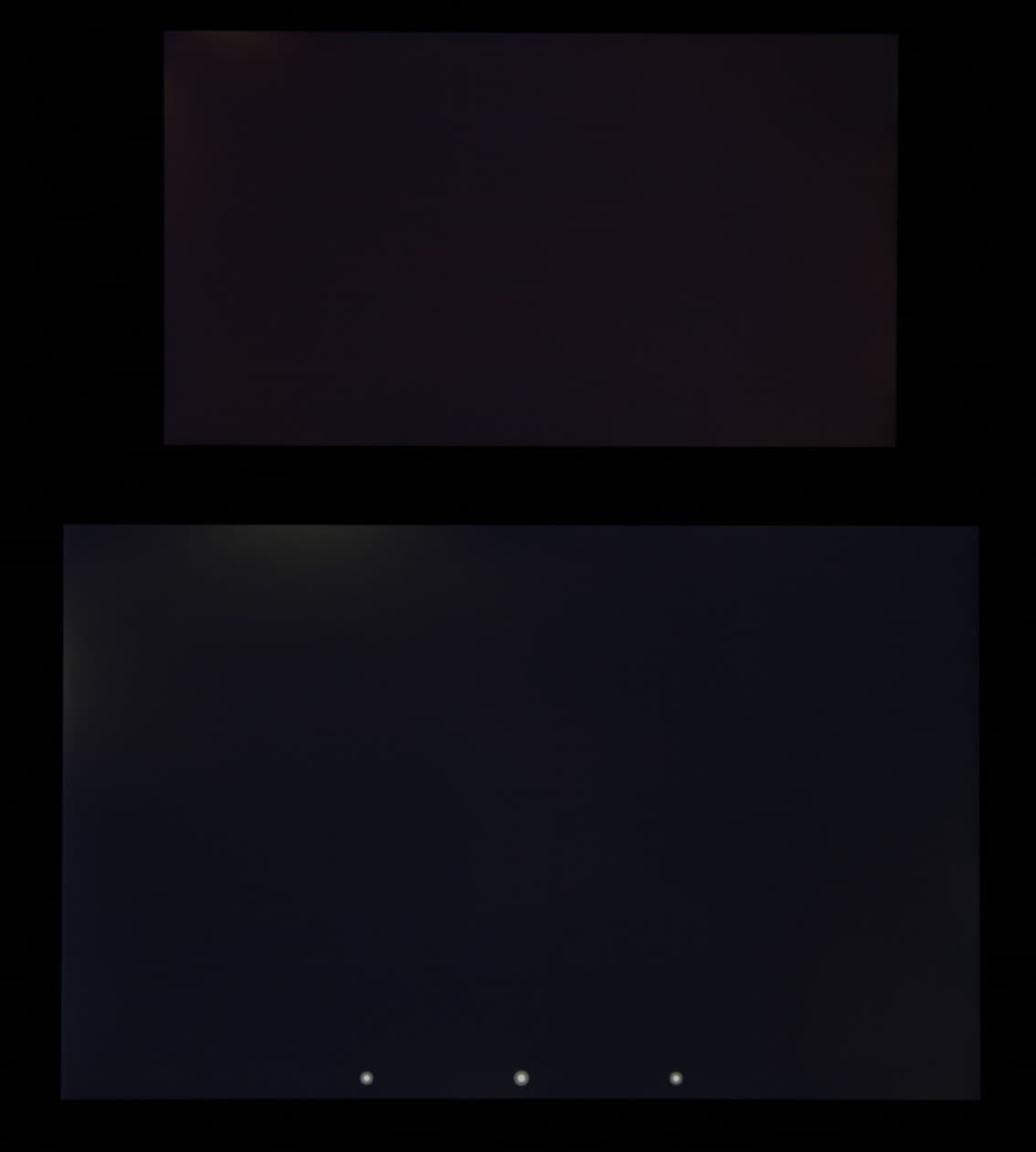 При перпендикулярном взгляде равномерность черного поля хорошая. Только по краю экрана есть несколько участков с немного повышенной яркостью черного: