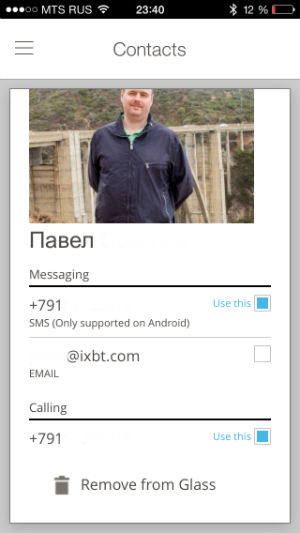 Завершают список базовых возможностей Google Glass телефонные функции. Вы можете позвонить, принять звонок или отправить SMS-сообщение (последнее работает только на Android).