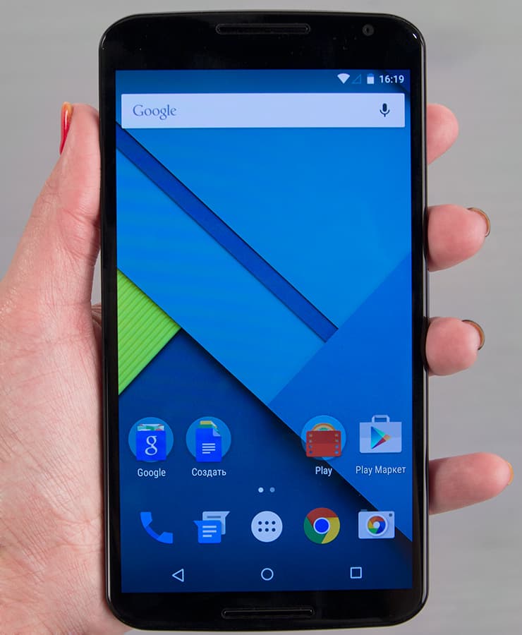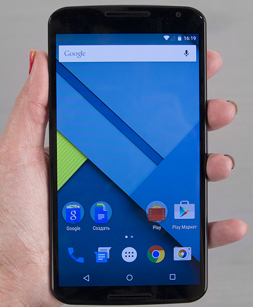 Смартфон получился невероятно крупным по размерам — это, пожалуй, самый большой на сегодняшний момент мобильный аппарат среди топовых марок, которому больше подходит звание планшетофона (по-английски «phablet»). Смартфон очень широкий, им совершенно невозможно управлять с помощью одной руки, масса устройства тоже велика. При большом желании Nexus 6 вполне можно засунуть в карман, но передвигаться и тем более приседать будет, конечно, проблематично. В общем, достаточно трудно понять, чем руководствовались разработчики, выпуская «самый большой смартфон», но это уже и правда где-то за гранью разумного.