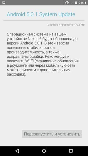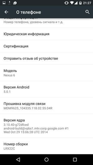 В качестве системы в аппарате используется свежая версия программной платформы Google Android в таком виде, какой задумывали ее создатели из Google — нетронутой рукой сторонних разработчиков. Традиционно, аппараты серии Nexus первыми получают все самые свежие обновления ОС Android, так что Nexus 6 поступает в продажу и работает на самой последней, пятой по счету версии ОС Google, названной Lollipop (леденец), да еще и предлагает сразу же обновиться «по воздуху» до версии 5.0.1.
