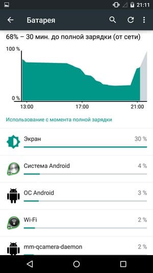 | Google Nexus 6 | 3220 мА·ч | 18 ч. 00 м. | 10 ч. 30 м. | 3 ч. 40 м. |