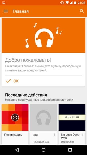 В звуковом плане Nexus 6 приятно удивил, особенно после весьма неудачного в этом отношении предшественника, Nexus 5. У аппарата встроено два фронтальных стереодинамика, звучат они чрезвычайно громко, звук на максимальной мощности остается чистым, без хрипов и примесей, низкими частотами не обделен. В наушниках звук тоже громкий и чистый, густой, яркий и насыщенный, прослушивать музыкальные композиции одно удовольствие, хотя фирменные наушники в штатный комплект вложить пожадничали. Для проигрывания мелодий здесь, естественно, предусмотрен лишь фирменный плеер Play Music с элементарными настройками в виде эквалайзера. Радио в аппарате нет, телефонные разговоры с линии смартфон записывать не умеет.