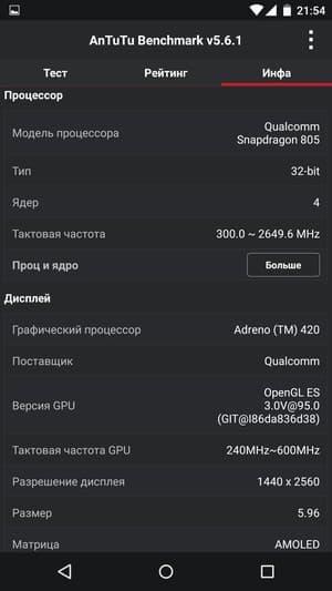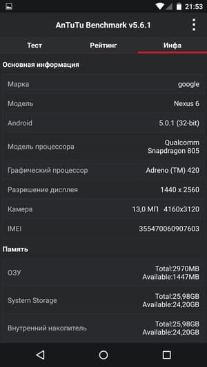 Основные характеристики Google Nexus 6 (XT1100)
