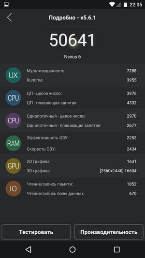 И тем не менее, герой обзора безусловно будет справляться с любыми поставленными перед ним задачами, в том числе и самыми требовательными играми. Аппаратные возможности Nexus 6 будут актуальны еще долгое время, запас мощности огромен, особенно учитывая отсутствие тут всяческих программных надстроек и оболочек, утяжеляющих работу системы.