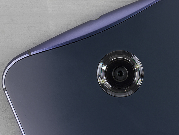 На тыльной стороне смартфона можно обнаружить лишь крупное окошко камеры, обрамленное прозрачным колечком. Под колечком находится два ярких светодиода, так что оно играет роль круговой вспышки. В панели быстрого доступа имеется программа, превращающая вспышку в фонарик. Здесь же на задней стенке расположили оба логотипа — Motorola и Nexus, они занимают весьма заметную часть общей площади задней поверхности.