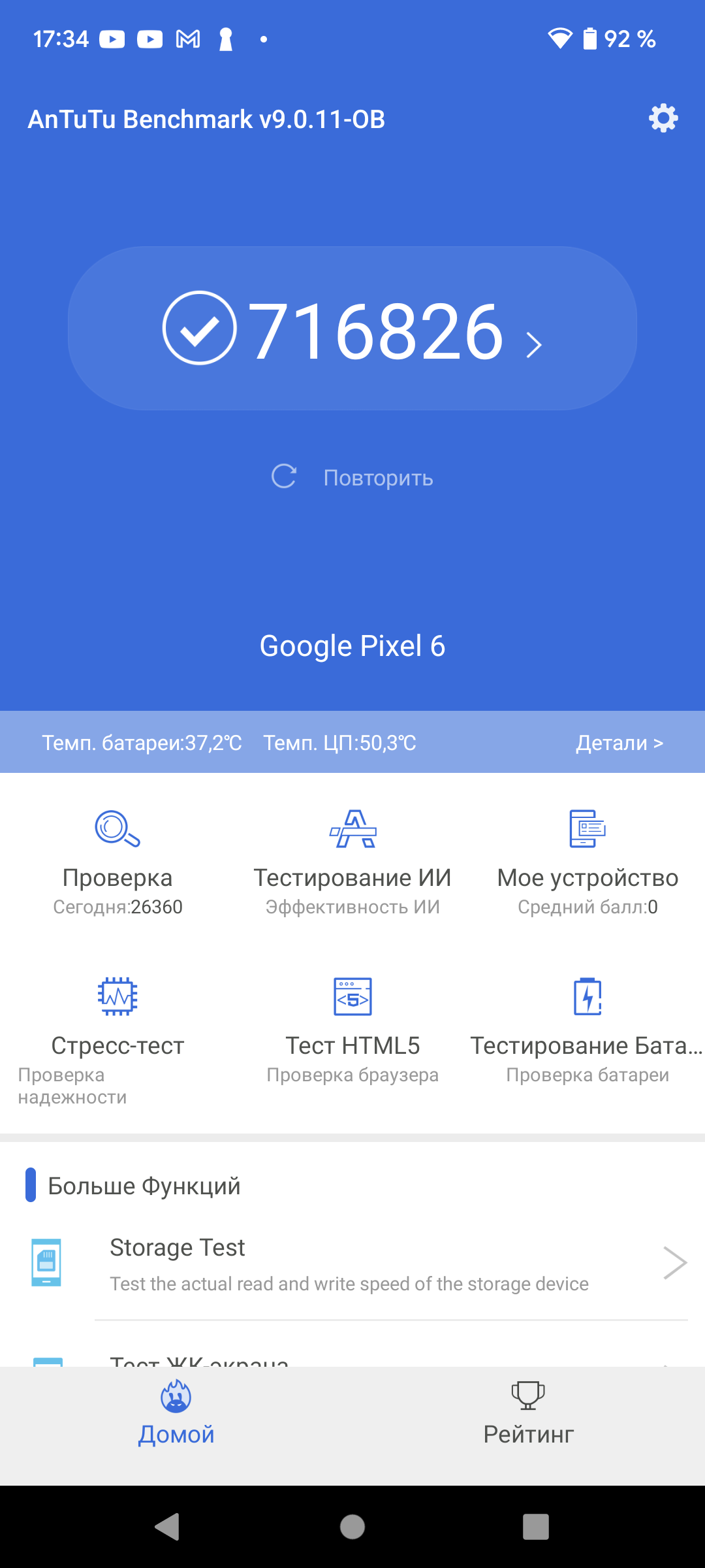| AnTuTu (v9.x) (больше — лучше) | 716826 | 835915 | 727479 | 651541 | 492381 |